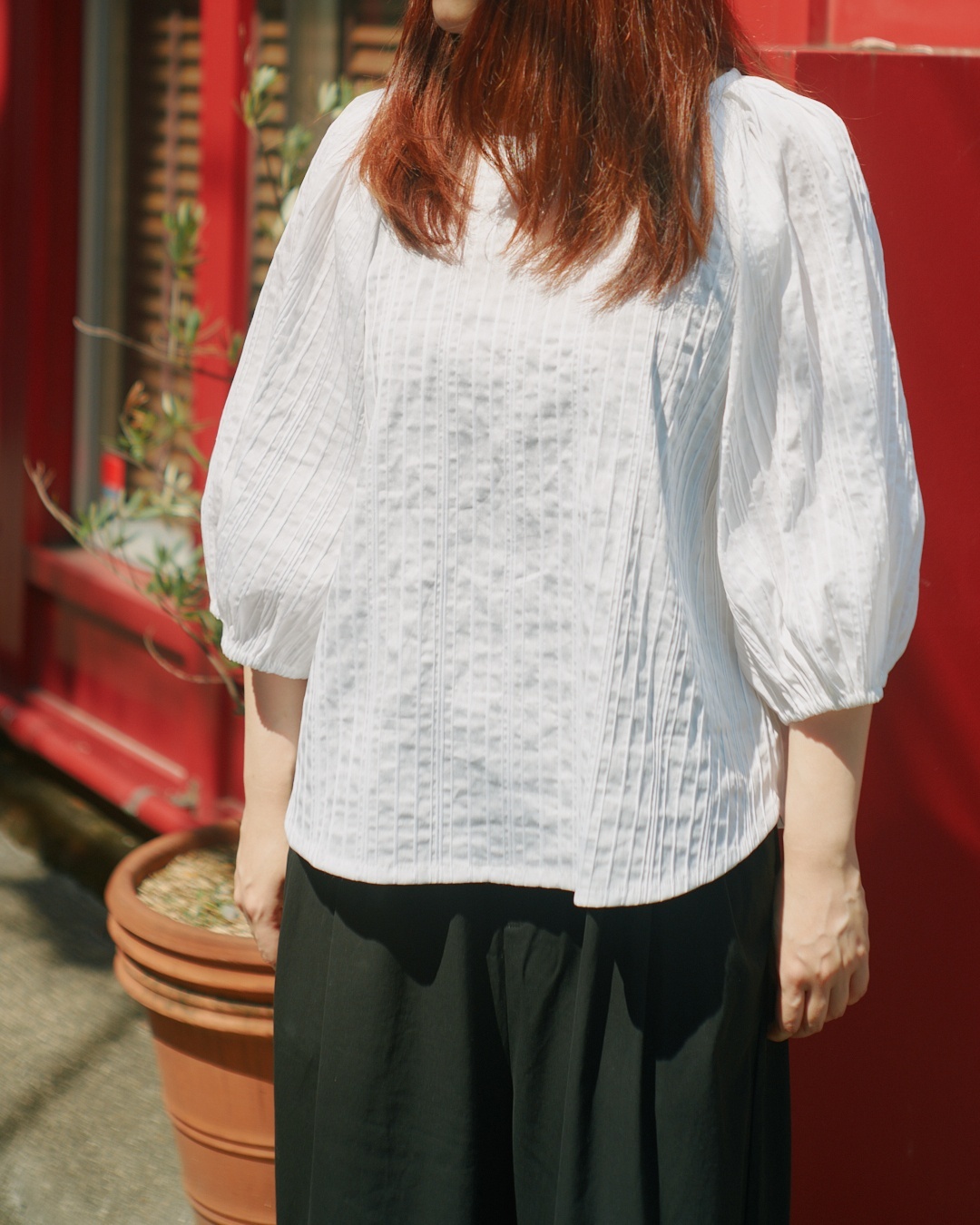 たっぷりとギャザーを寄せたボリューム袖で