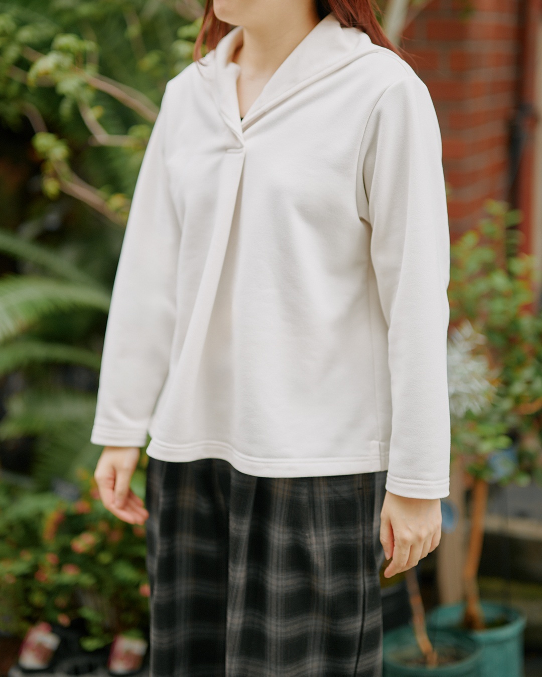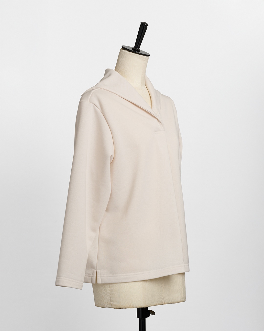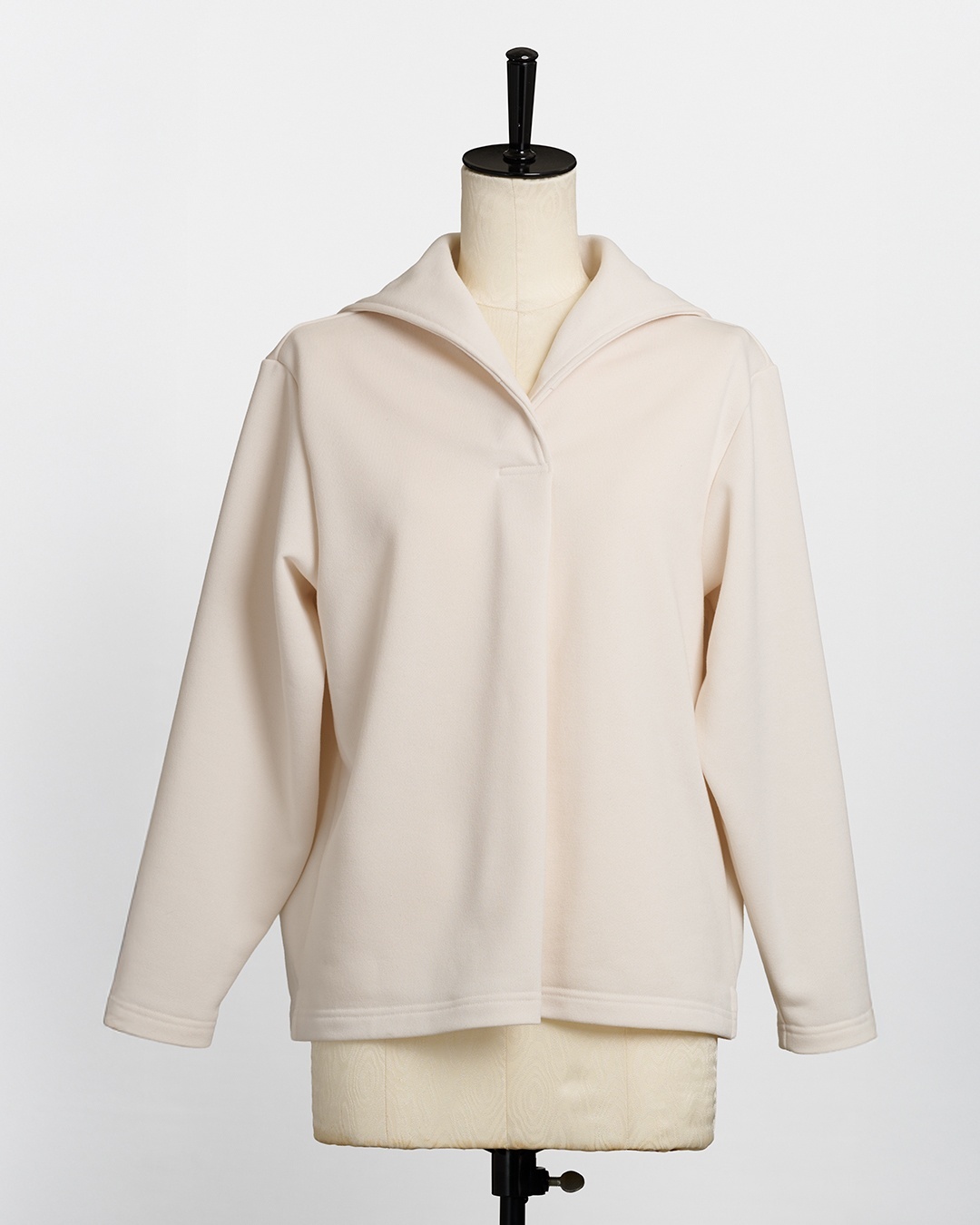 前中心に入ったフロントタックがポイントの、セーラーカラーのプルオーバーです。