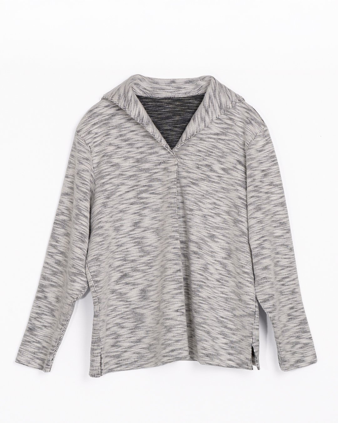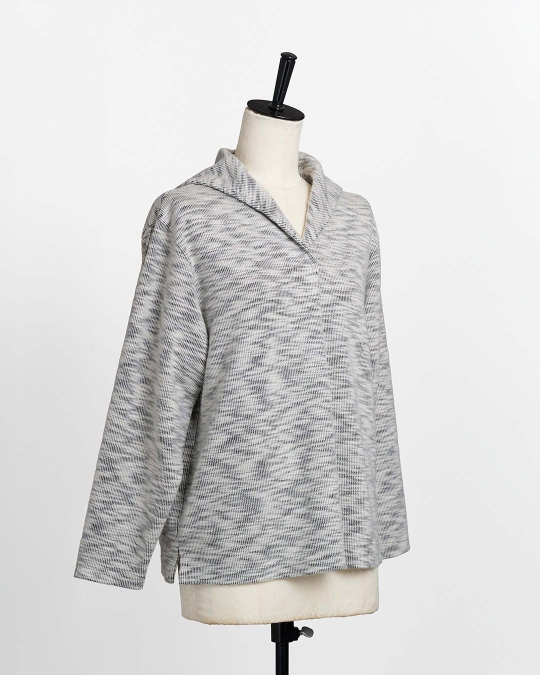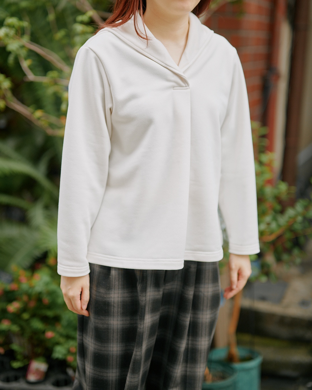 前中心に入ったフロントタックがポイントの、セーラーカラーのプルオーバーです。